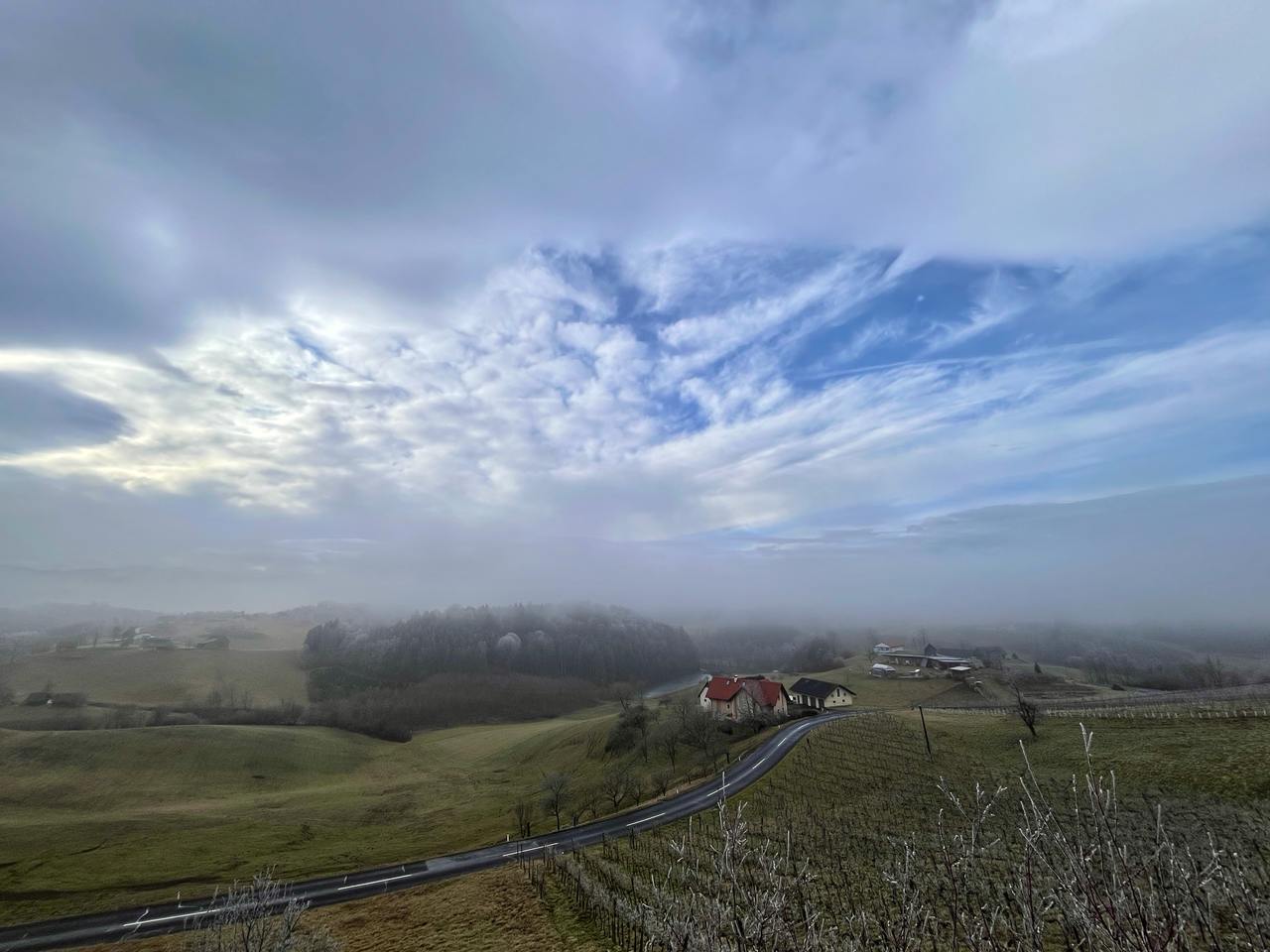 An diesem Tag konnte der dichte Bodennebel nur aufgelöst werden, weil der große Himmelsreiniger die oberen Wolkenschichten geknackt hat. Dadurch löste sich dann der Nebel am Boden auf.