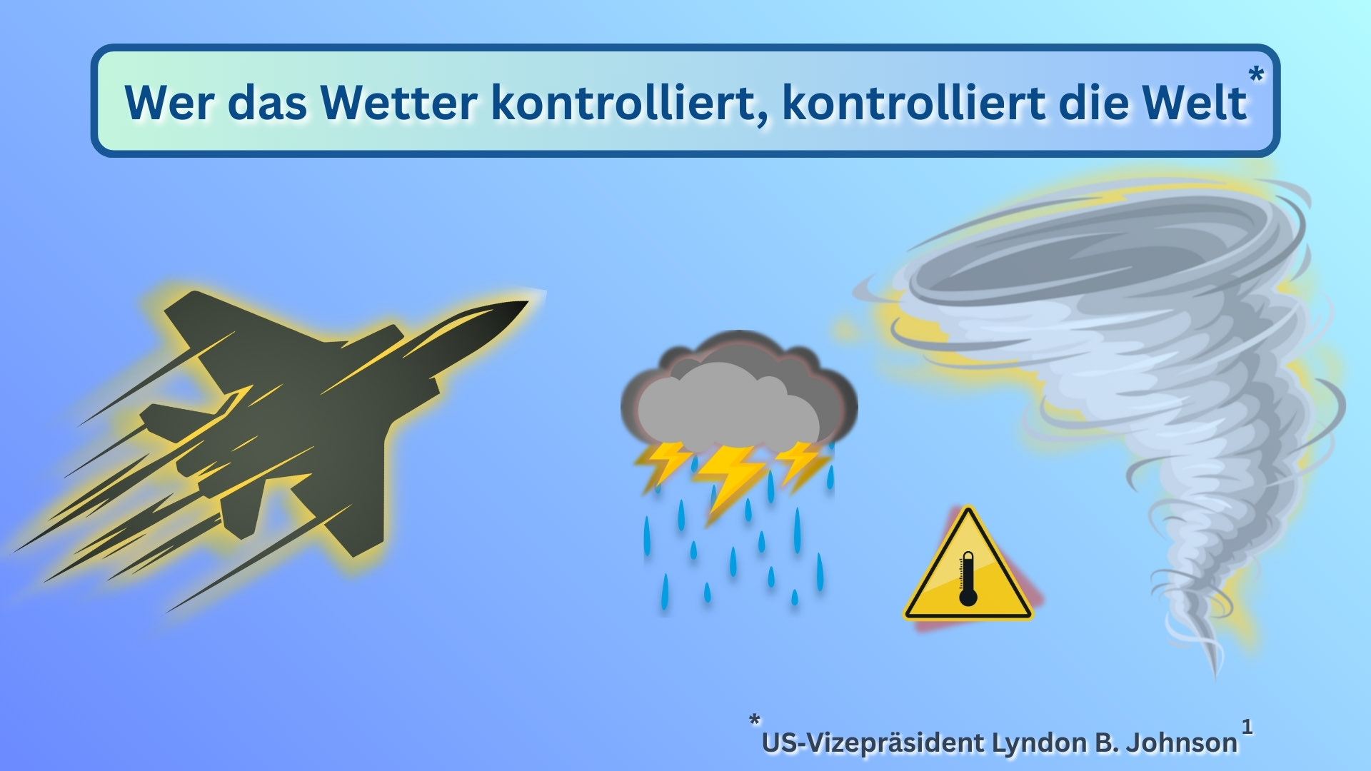 Militärische Wettermodifikation umfasst das gezielte Verstärken oder Unterdrücken von Nebel, Regen und Stürmen auf lokaler, sowie globaler Ebene. Durch gezielte Steuerung einzelner atmosphärischer Parameter soll sogar maßgeschneidertes Wetter möglich werden.